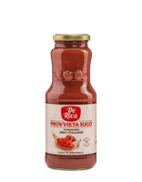 Trittare aglio, cipolla e peperoncino finemente, fare appassire con olio. Aggiungere sugo De Rica, coprire e cuocere dolcemente per 15 min.