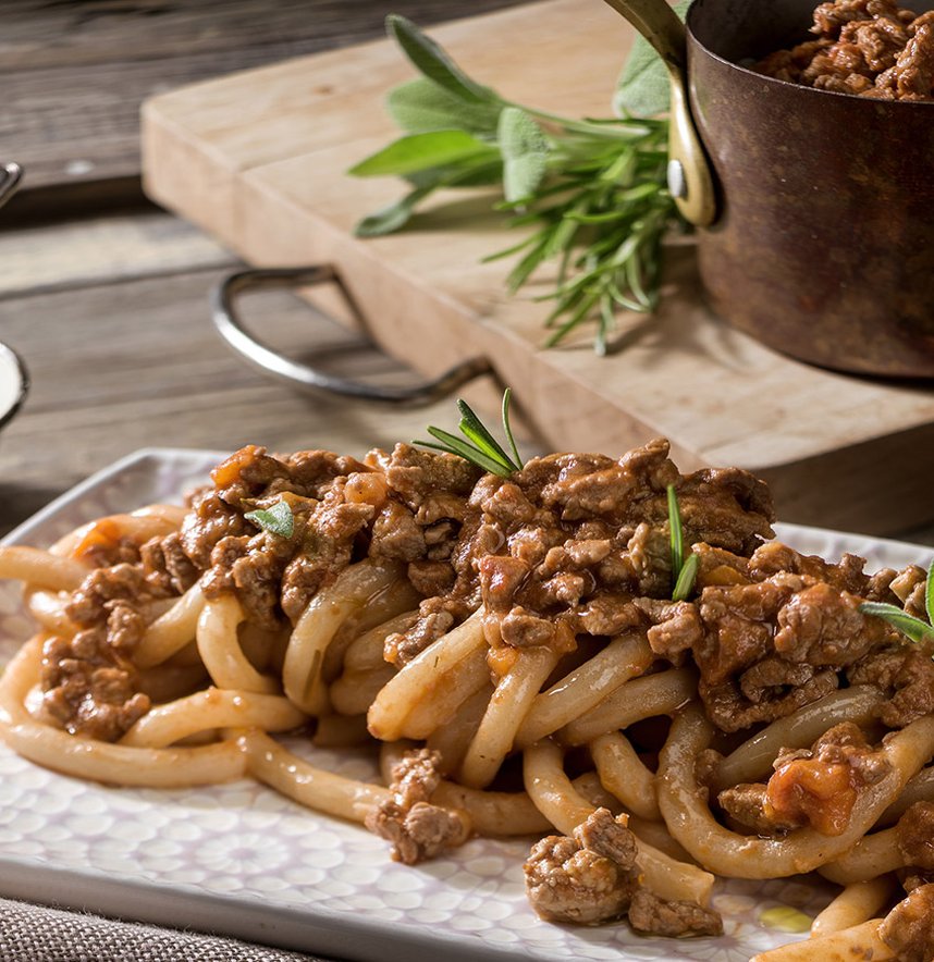 La ricetta tradizionale prevede un ragù bianco, in questa versione rivisitata lo prepariamo in rosso.