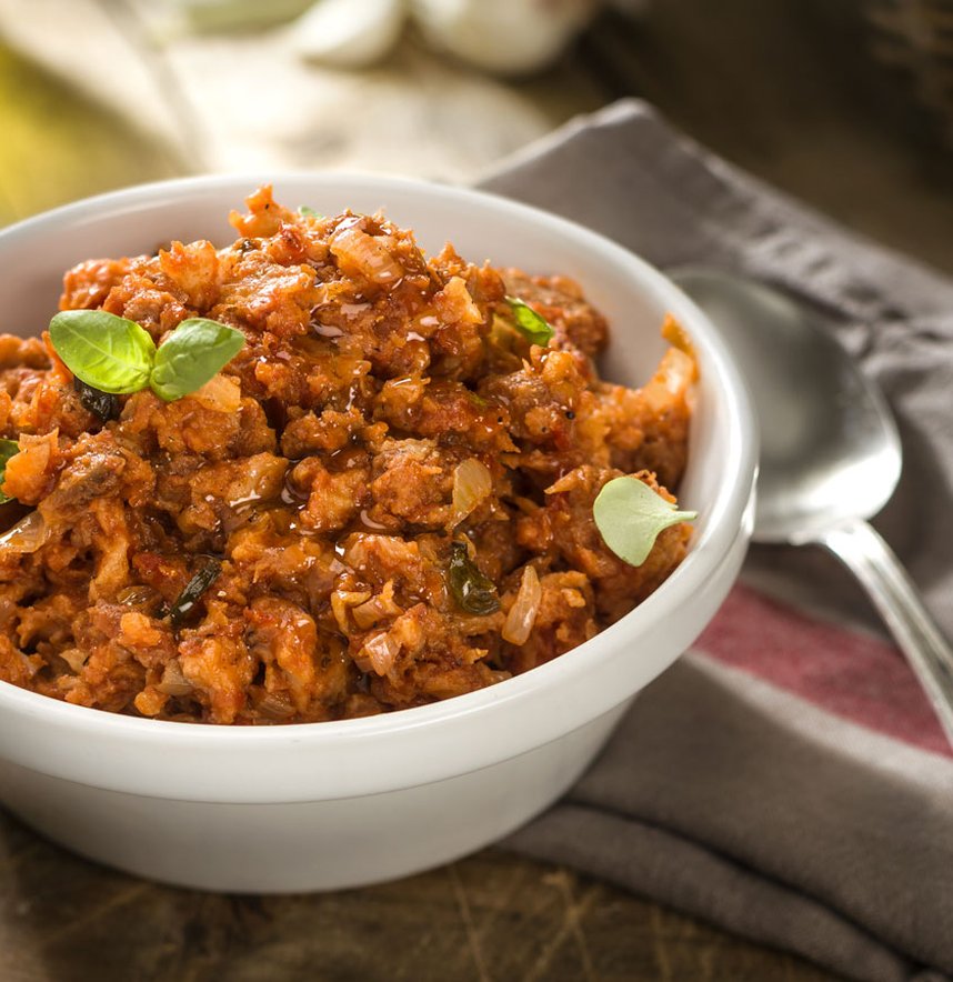Il pane poi va strizzato e sbriciolato non troppo finemente. La cipolla tritata va soffritta in una pentola capiente per pochi minuti. Poi vi si aggiunge il pane e si fa insaporire per 2 o 3 minuti. Infine si aggiunge la provvista sugo di pomodoro Vallivo e si cuoce per 30-40 minuti.