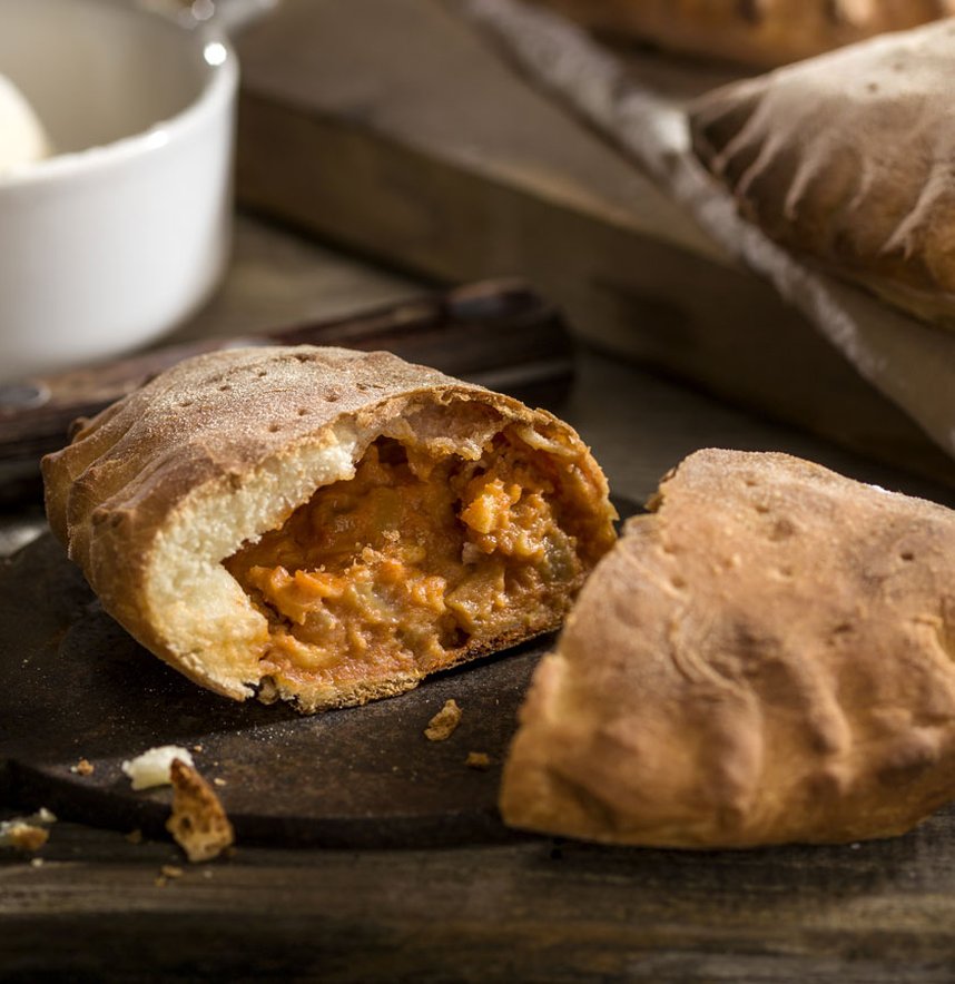 Come molti piatti siciliani, le ritroviamo con nomi diversi, “Scacciata” a Catania e “Impanata” a Palermo. In questa ricetta prepareremo la versione ripiena di melanzane fritte, caciocavallo ragusano grattugiato, salsa di pomodoro e pan grattato.