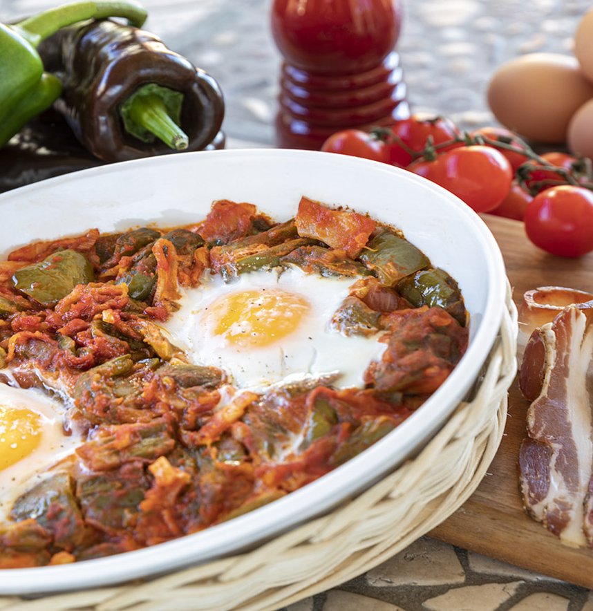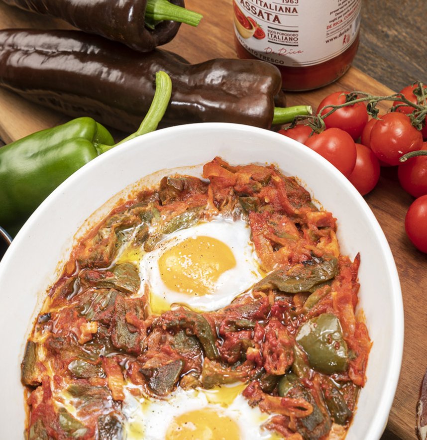 Una preparazione particolare, tipica appunto della cucina del Piemonte, che vede le uova servite con un sugo ricco e profumato a base di passata di pomodoro, peperoni e pancetta. La cottura delle uova avviene in forno, e sotto una leggera crosticina si nasconde un tuorlo liquido che solleticherà tutte le papille gustative.